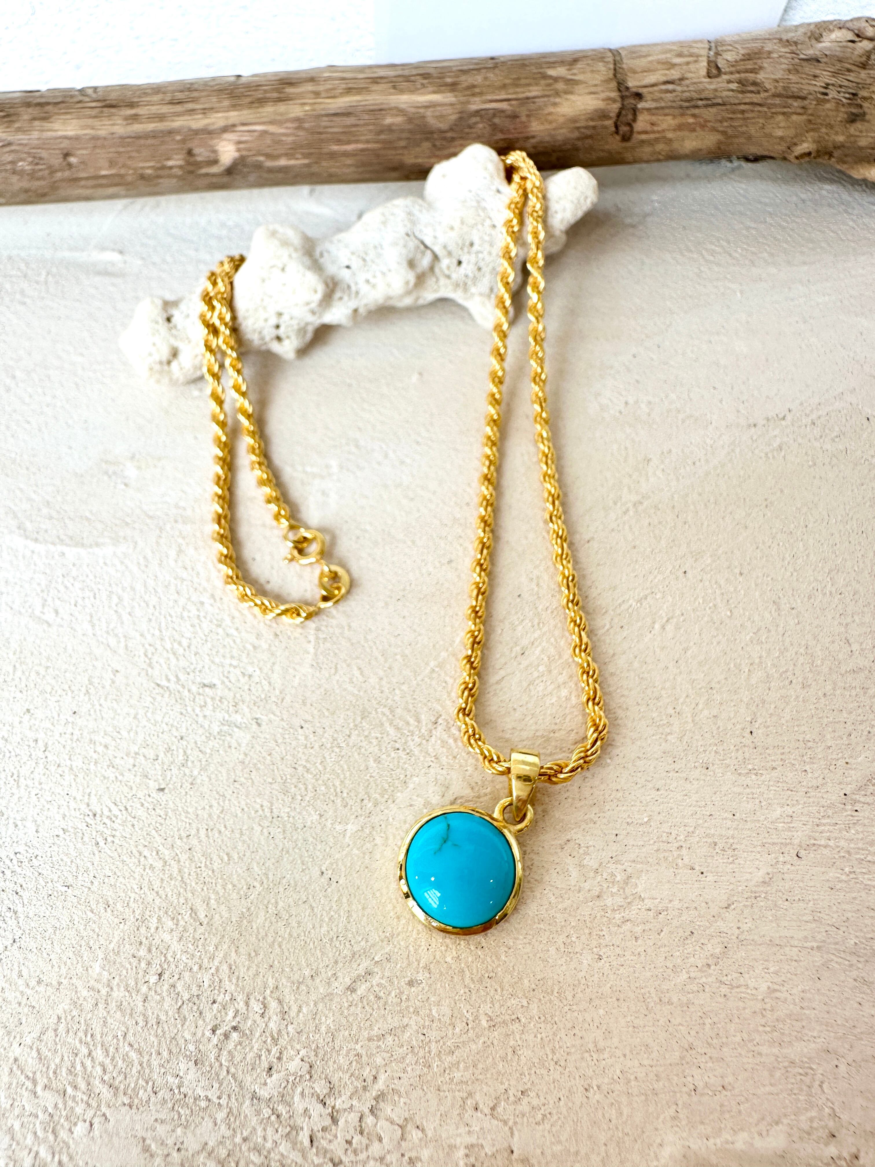 AAA天然石、キングマンターコイズ×18kgp(SV925)のペンダントトップがついたロープチェーンネックスです。