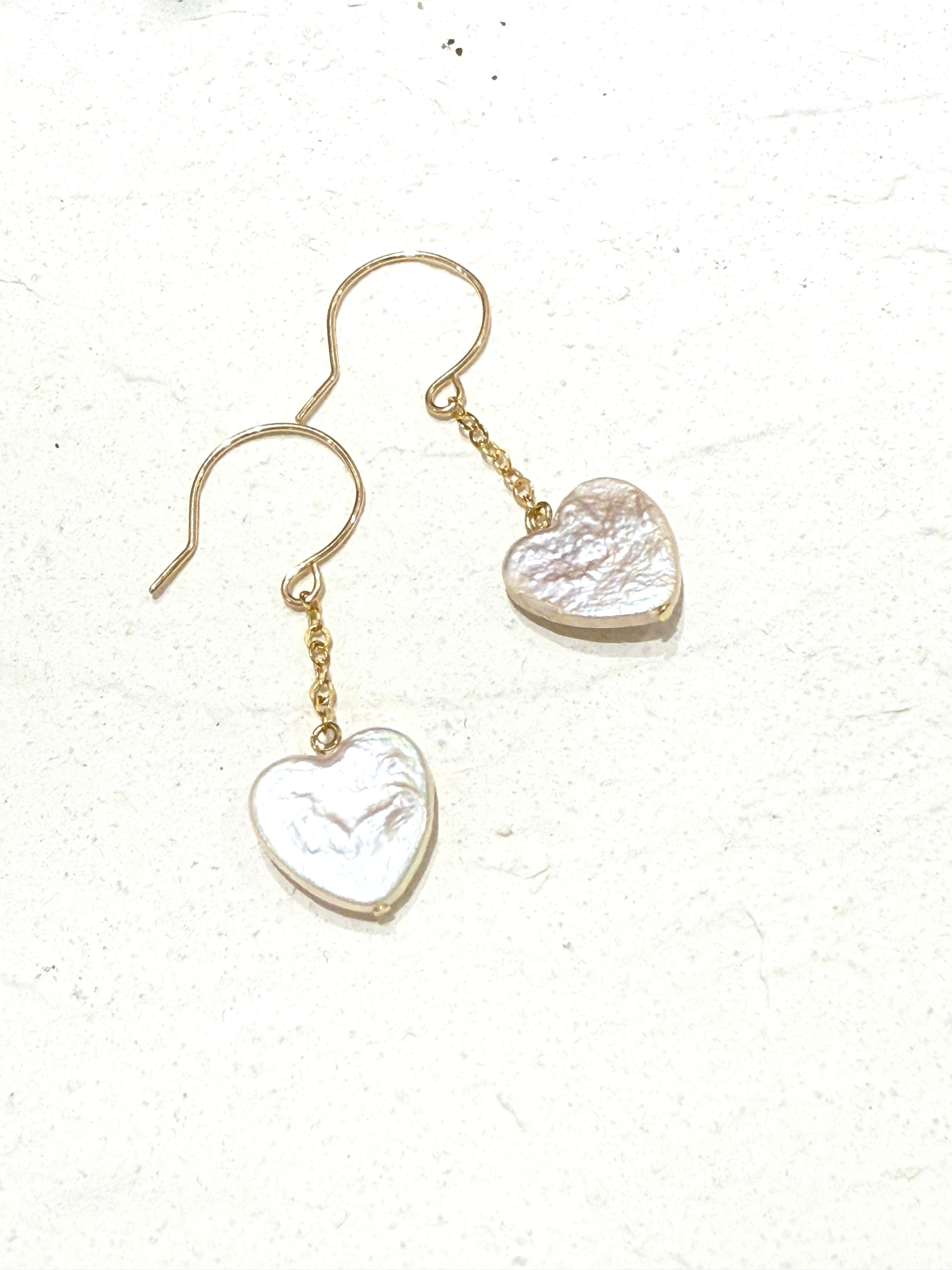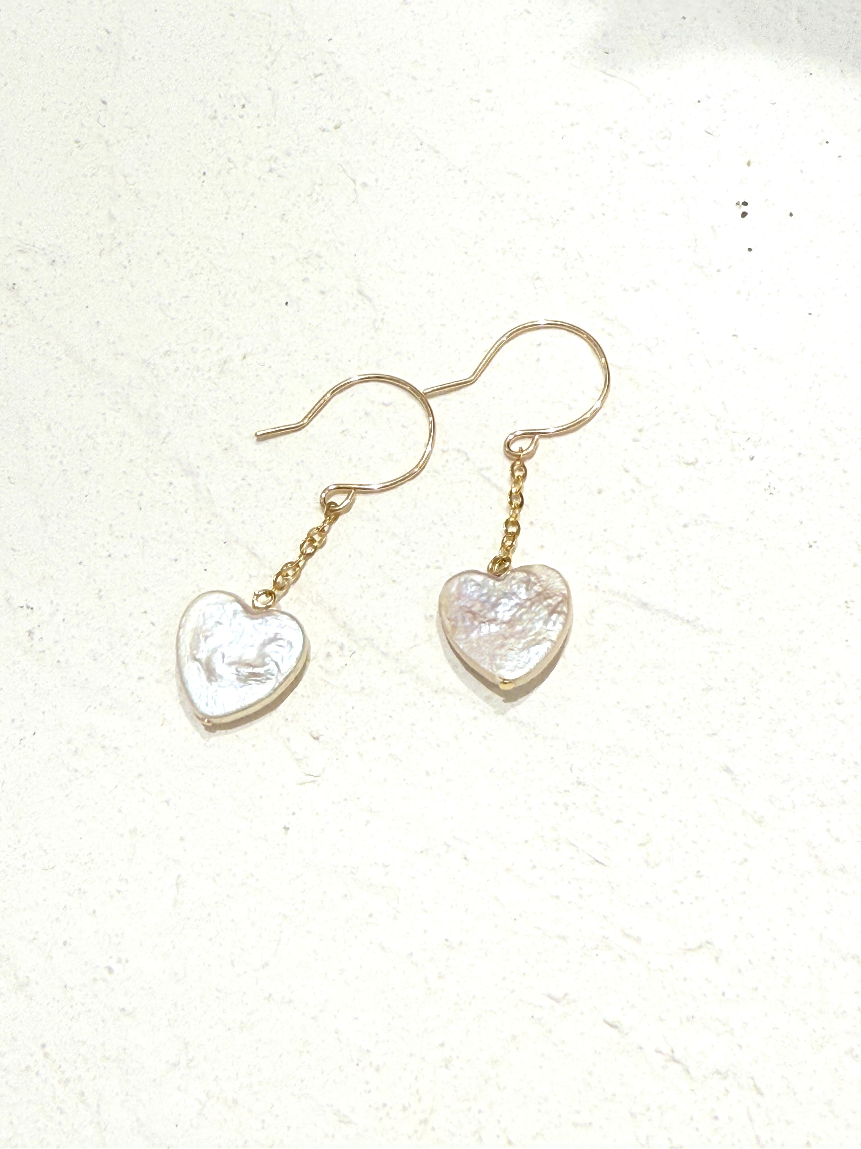 「ハートパールは、ふんわりと耳元で揺れながら、心を温かく包み込むような美しさを持っています。どんなシーンでも特別な雰囲気を演出してくれるピアスです。」